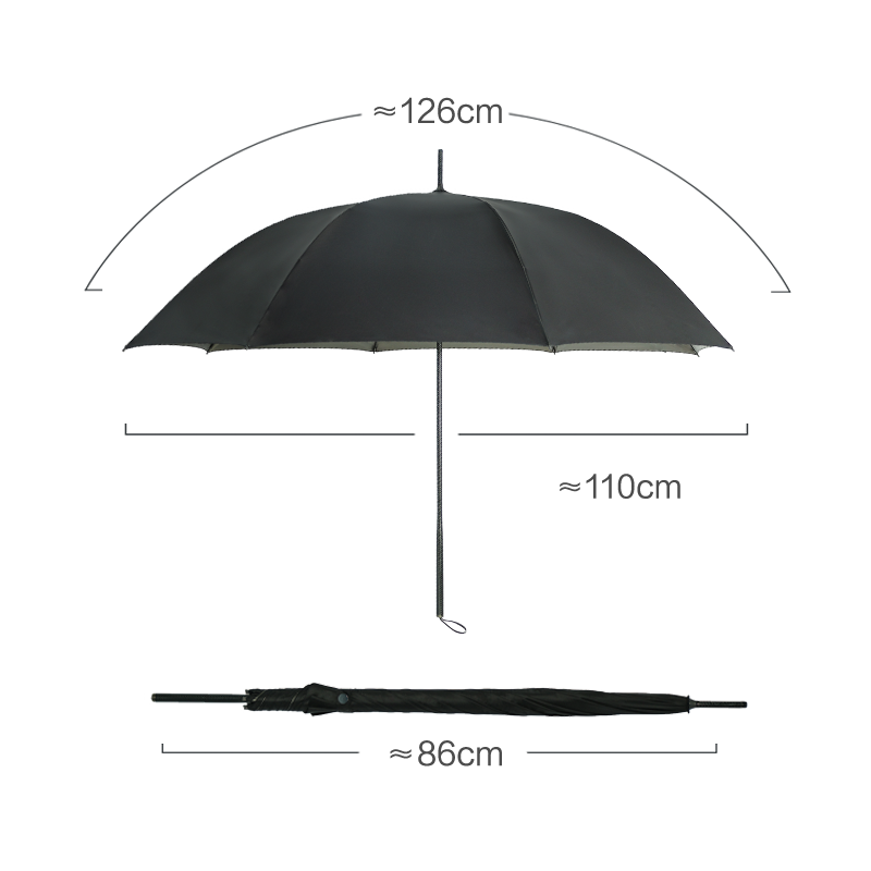 炭素繊維は傘棒の細管から一体化傘柄まで徐々に太くなり、炭素繊維のテクスチャは変形せず、美観はより強固で、傘柄は長期使用で変形しにくい。傘の表面の展開は126センチに達し、重さは175グラムに軽く、ボタンなしスイッチは指を保護し、吸引式接続設計は風を防ぐことができる。